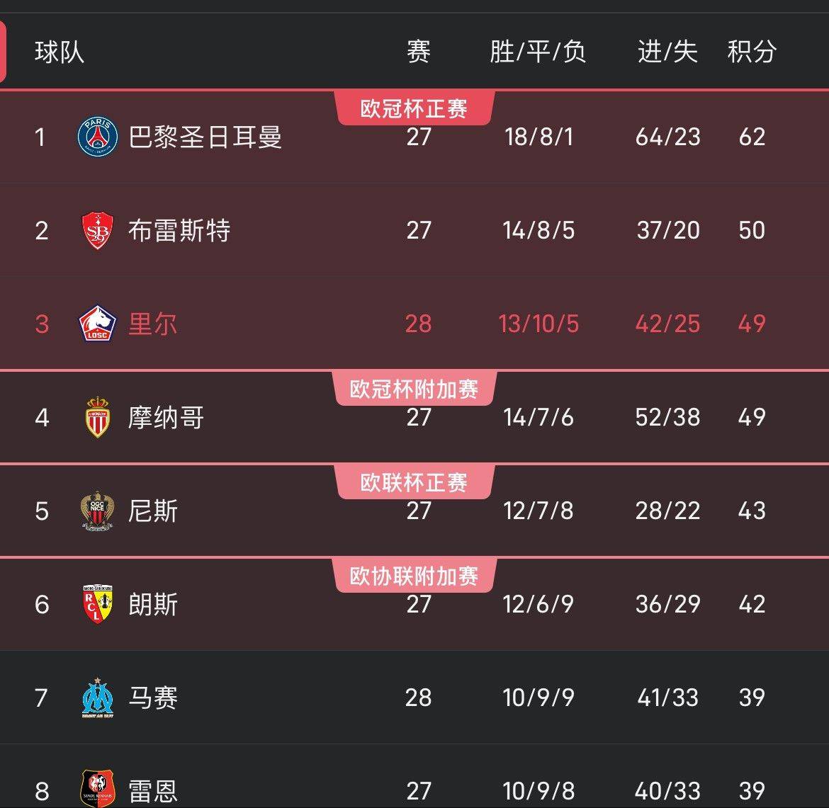 北京时间4月6日。法甲第28轮,里尔3-1击败马赛。 拿下马赛后,里尔近7场比赛取得4胜3平的不败战绩。积分榜上,他们也暂时超越摩纳哥升至第三位,冲进欧冠资格区。...