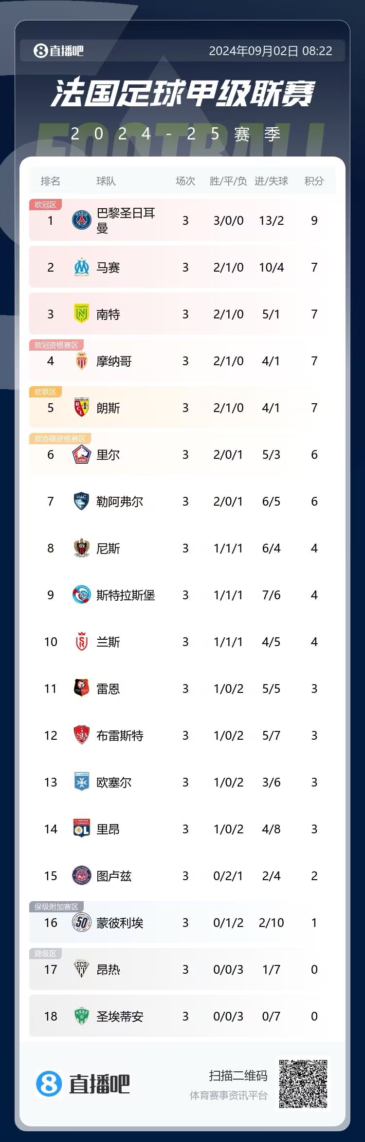 法甲:巴黎3战全胜