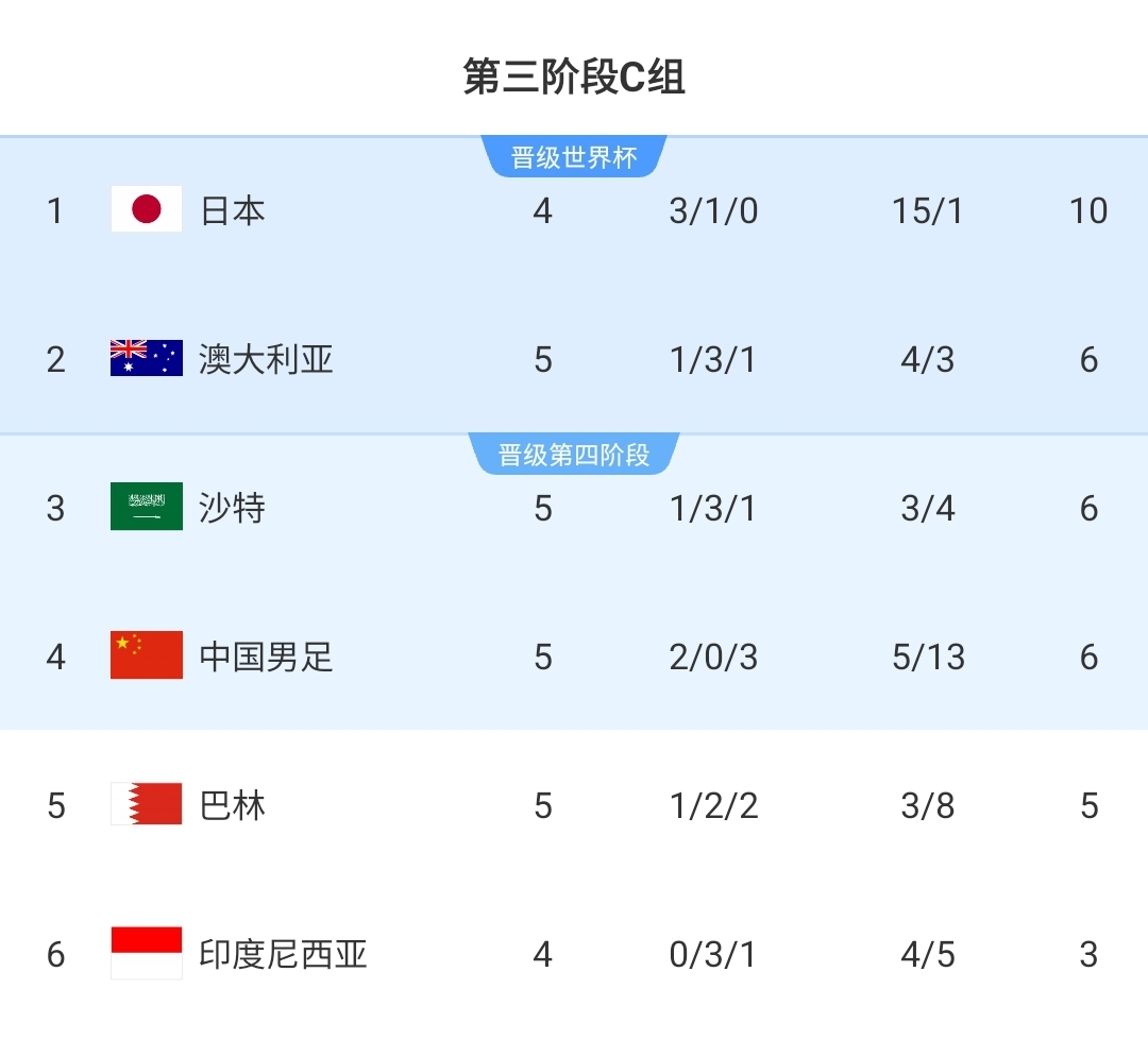 11月15日讯 北京时间今晚20点,18强赛C组第5轮印尼vs日本,这也是国足18强赛所在小组6队首循环的最后一场比赛。