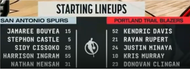 北京时间7月14日讯,今日NBA夏季联赛开拓者VS马刺。目前两队首发已经出炉: